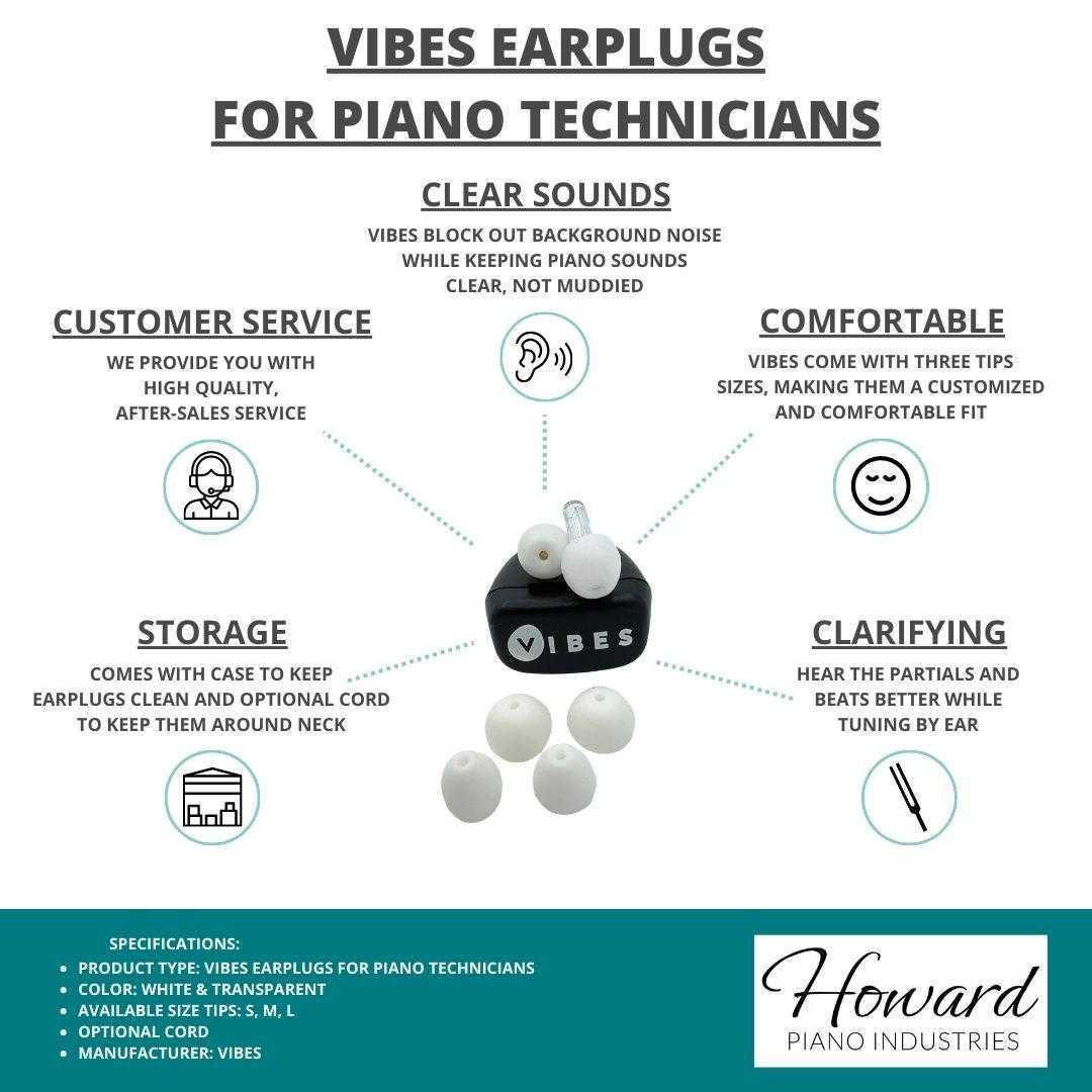 An effective way to filter sound while piano tuning is to use earplugs that enhance the sounds of the piano while lowering volume to help protect your hearing. Vibes Earplugs are designed to give what you're needing to hear more clarity while blocking out unwanted background noise. Provides approximately 22 db reduction across frequencies. Comes with three different sizes of interchangeable ear tips as well as a case to keep your earplugs in. There is an option for adding an attachable cord so the earplugs can be hung around the neck when not in use.