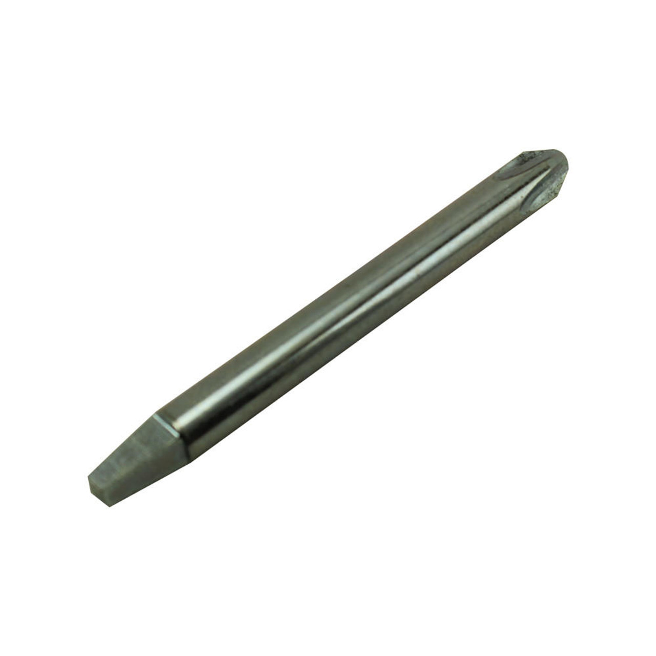 These are extra large size screwdriver bits which have a tapered square at one end so they can be used in any piano tuning lever. These screwdriver bits are especially useful in tightening large head screws such as plate screws. Available in either slotted or phillips head style. Bits are 4-1/4" long and are made of tool steel. Slotted bit is 3/8" wide and phillips bit is a size 4.