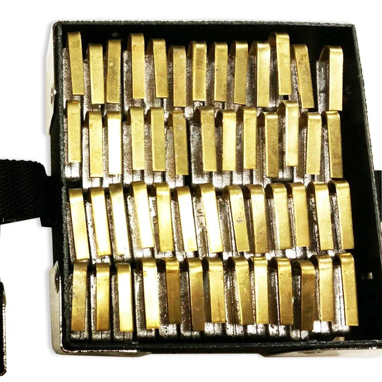 Set of 52 brass spring clip leads weighing 3 oz. each, comes with a reinforced fiberboard case with straps that measures 6-1/2" square. These leads, which fit over the backchecks, replace the weight of the grand action when the keyboard is removed for key leveling.