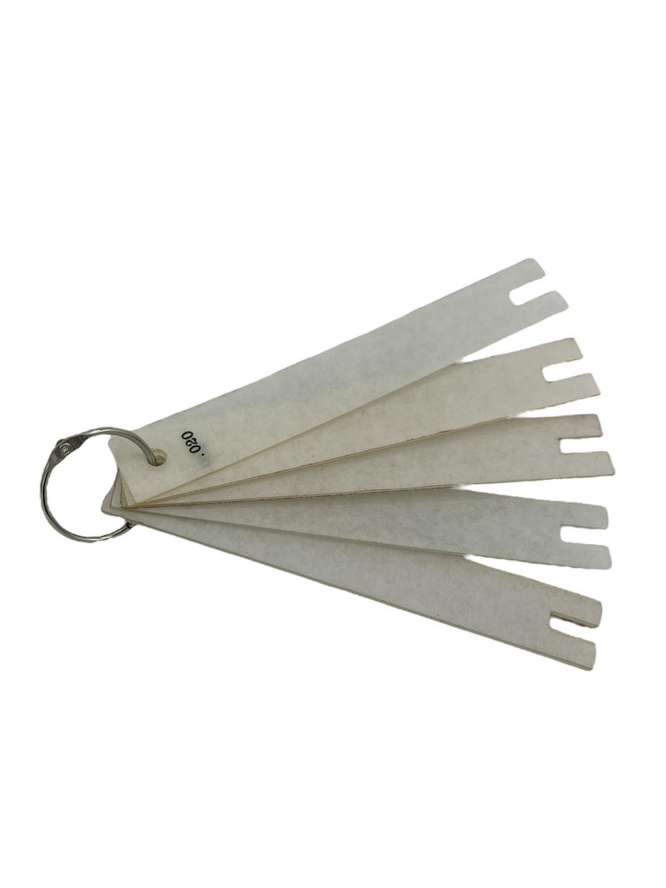Set of 5 gauges used to measure the aftertouch on either a grand or vertical piano. The thicknesses included are .020", .030", .040", .050" and .060". There is a slot in the end to fit around the key pin. The gauge can be put either under or over the felt front rail punching. The video below demonstrates how to use this tool.