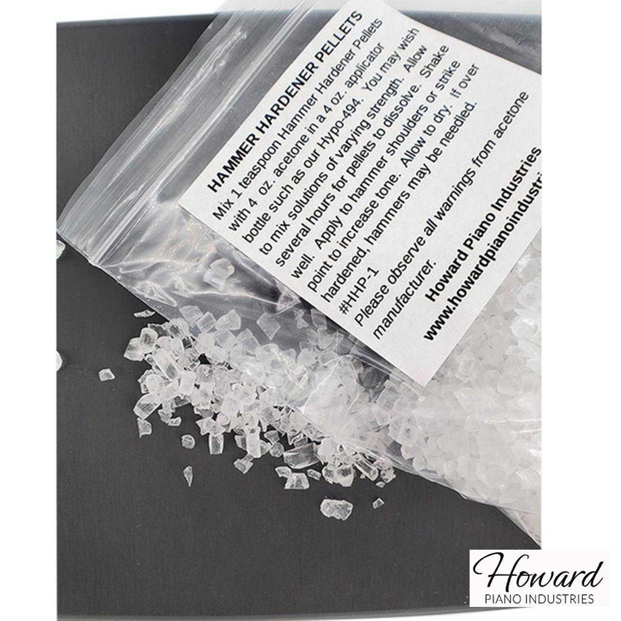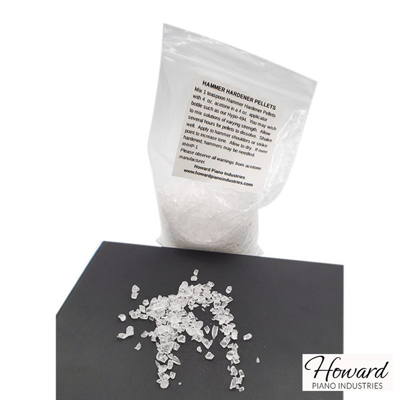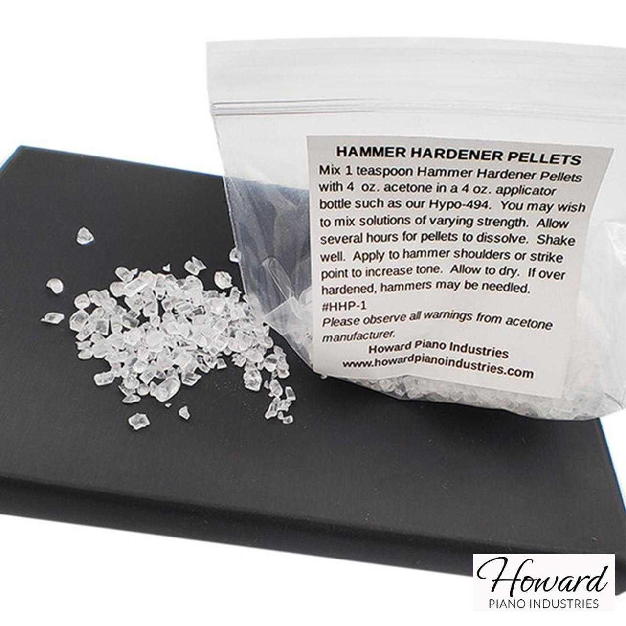 - ACRYLIC GRANULES HARDENER PELLETS: At times a piano's hammers may need treatment to increase the tone created by the hammer. This is especially true in the high treble end of the piano. Using a solution of acrylic granules and acetone is one way of achieving this.