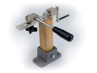 Professional tool for making various length loops for plain wire strings as well as bass strings. Includes a base for permanent workbench or wall installation. Can also be mounted on a board which can then be clamped to your workbench.