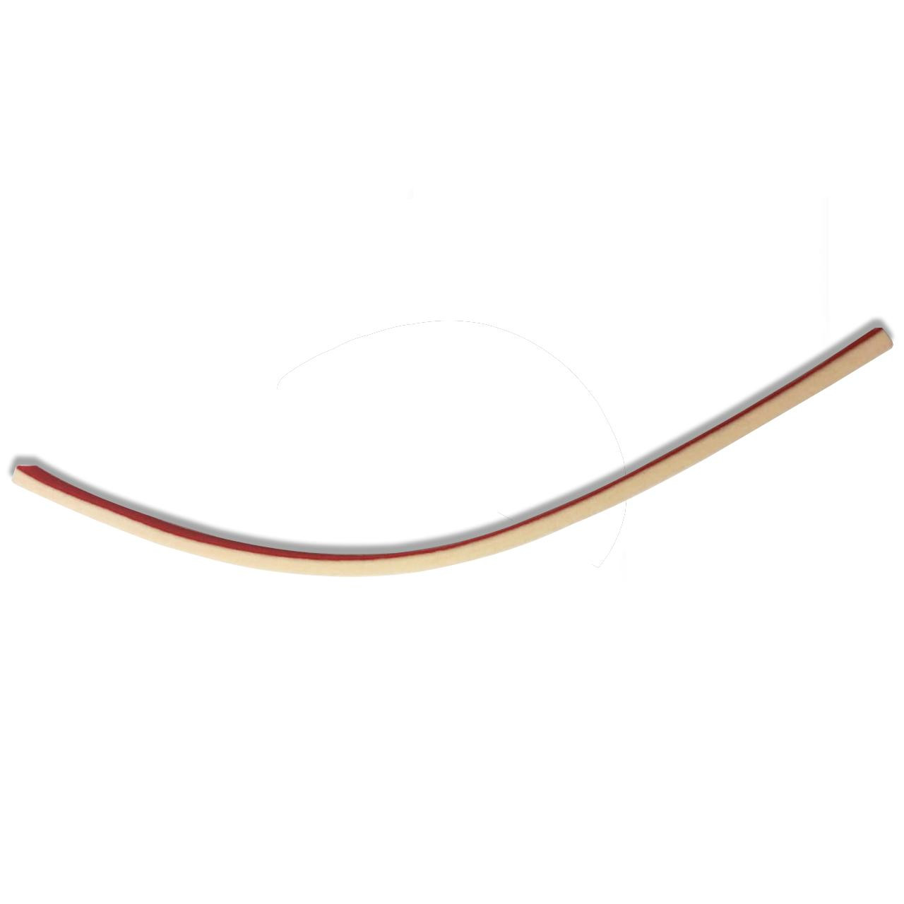 Replacement damper felt for treble section of grand pianos. Soft white felt with red backing that is not creased. Strip is 3/8" thick and 19" long. The width tapers from 7/8" to 5/8".